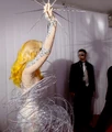 Леди Гага вышла на красную дорожку в платье, напоминающем орбиту, и со звездой в руке. Все ее наряды в тот вечер были на космическую тематику, поскольку Джорджио Армани, дизайнер, недавно выпустил коллекцию космической тематики.
