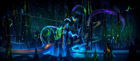Персонаж, житель Планеты Энигма, был воплощен в жизнь с помощью визуальных эффектов в реальном времени и технологии игрового движка, управляемой захватом движения, который был выполнен и озвучен самой Гагой. Технологическая группа The Mill создавала фильмы, используя комбинацию визуальных эффектов, захвата движения и технологии реального времени. Взаимодействие Гаги с Энигмой на сцене ставит шоу на пересечение музыки, искусства и технологий.