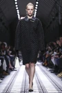 - Наряд от Balenciaga Alexander Wang, состоящий из черного костюма с глубоким V-образным вырезом, украшенного кристаллами Swarovski, белого пальто в клетку в стиле кимоно с ручной вышивкой черными перьями и черным атласным поясом, традиционного испанского гребня с кристаллами и остроносых ботинок на танкетке