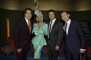 РОСС: Hi there! It’s Lady Gaga, mistress of the quick change. Wow, mind that step that was fantastic. It’s Lady Gaga! Doesn’t she look spectacular? [Leads Gaga round to sofa]