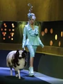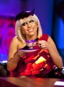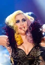 РОСС: But that’s what’s the incredible thing is ‘cos at I’ve only seen photographs of this I’m going to go and see you ‘cos you’re coming back here in May I think for some more dates (.) Hmm but you see people go to the Lady Gaga concerts dressed not really like you but you kinda inspire them to to become glamorous I guess to be there’s some people there. (Points to photograph on screen)