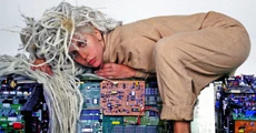- Шляпа от Philip Treacy, жакет от Yves Saint Laurent, штаны от Chanel, обувь от Pleaser, очки от France Look ("Rio 24"), и металлические части от Millennium FX