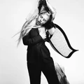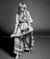 - Кимоно от New York Vintage, наряд от Emilio Pucci, кольца от Inez and Vinoodh и обувь от Hedi Slimane для Saint Laurent.