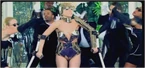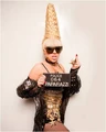 - Купальник из ракушек - Jeremy Scott, бра - Mugler, туфли - John Galliano, пуленепробиваемый ремень, который она носила как пояс - B. Akerlund.