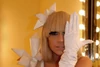 - Lady Gaga wears her origami dress, the Disco Stick, and crystal glasses by Haus of Gaga, and false eyelashes by Viktor & Rolf for Shu Uemura.