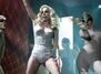 Gaga wore hair shades during So Happy I Could Die along with the leather jacket and sparkly neck piece. Gaga also wore white pants over the new mirror bodysuit.