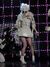 - Lady Gaga wears an outfit by Rachael Barrett, booties by Pleaser, and a custom headpiece by Moutton Collet.