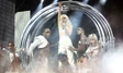 - Lady Gaga wears an outfit by Gareth Pugh, and boots by Ellie.