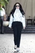 - Lady Gaga wears a crop top and trousers by Stella McCartney, boots by Azzedine Alaïa, and sunglasses by Tom Ford.