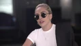 - Lady Gaga wears a T-shirt by American Apparel, and sunglasses by Saint Laurent.
