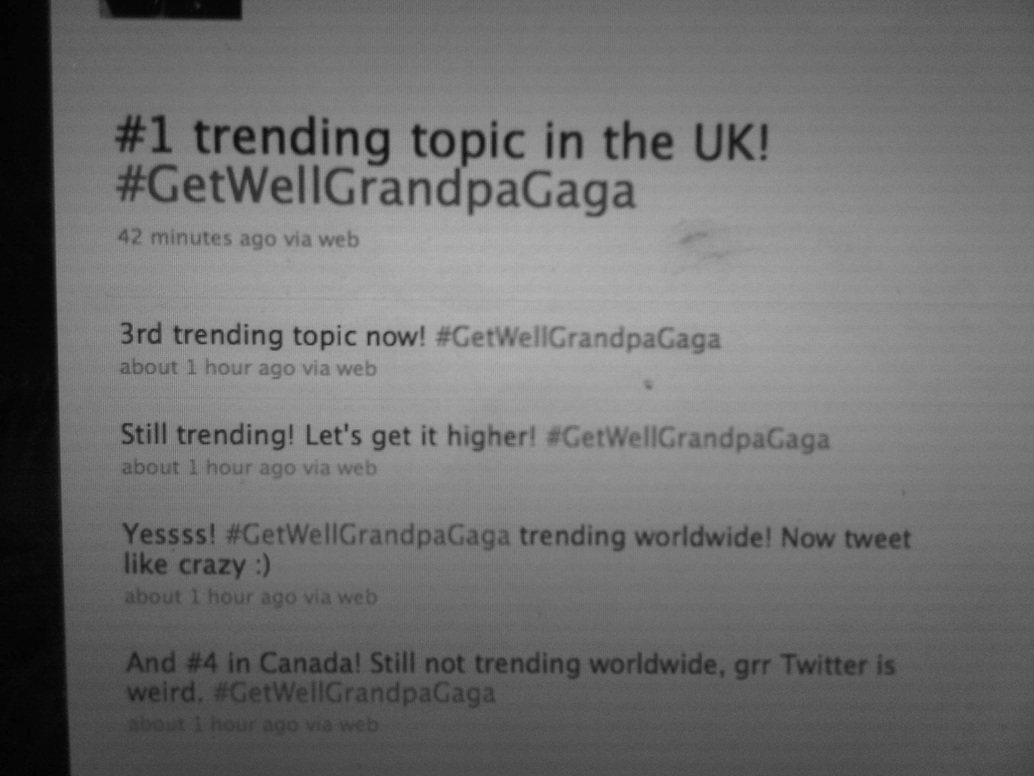 - "little monsters are the sweetest, thank you lil babies http://twitpic.com/1rw7nj" 12:19 PM via Twitpic