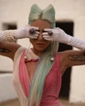 - Lady Gaga wears a bodysuit, leggings, gloves and a headpiece by Karina Akopyan x Monika Bereza, and boots by Ellie.
