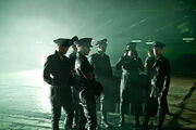 Boys: Custom military uniforms and combat boots by Emporio Armani, and shades by a-morir.