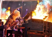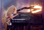 Lady Gaga performed a dramatic medley of "Bad Romance" and "Speechless". During "Bad Romance", she was accompanied by dancers, who were all sporting flesh colored suits and lighted exo-sceleton masks. She proceeded to remove her lighted head-piece shortly into the performance. After, she made her way to a glass box which she shattered with her microphone stand, in order to get to her fire spurting piano, in which she would play "Speechless". Throughout the latter half of the performance she broke bottles on the piano in a synchronized manner with the music for dramatic.