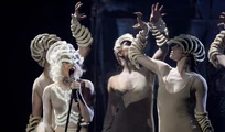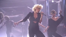 - Lady Gaga: Custom bodysuit by Muto-Little Costumes, bra by Atsuko Kudo, custom garters by Alex Noble, custom headpiece, chest piece and leg pieces by Gary Card x Tom Talmon Studio, and customized boots by Pleaser.