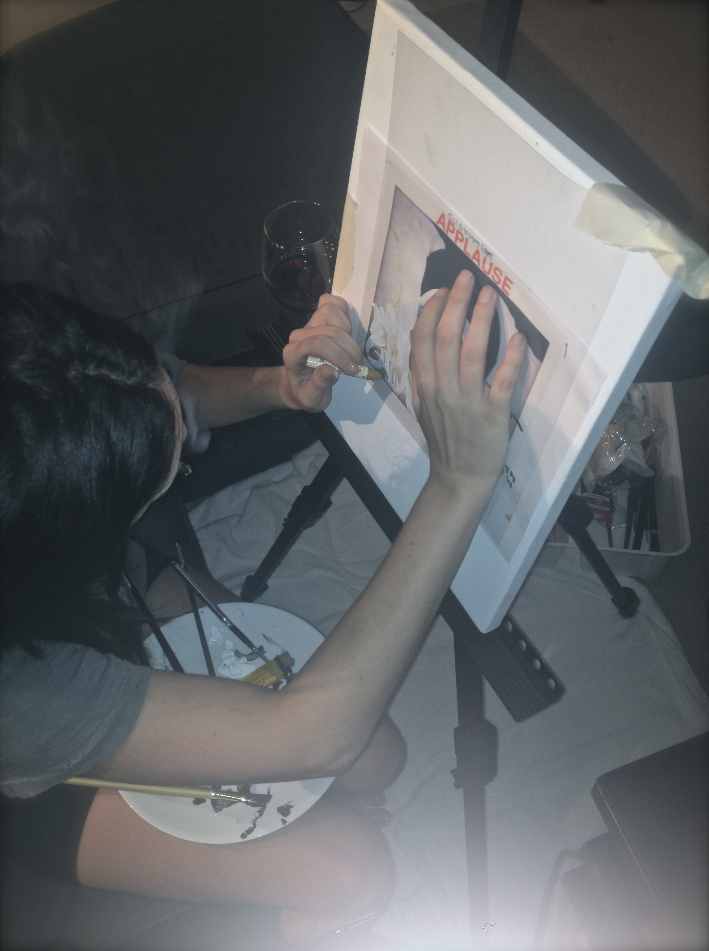 - On July 24, 2013, Tara Savelo posted via Little Monsters, a photograph of Gaga stenciling on what looks to be a photograph of the single cover. Above the photo reveals the word “APPLAUSE” and in much smaller writing, a signature by Gaga along with the date of the single release — August 19th, 2013.