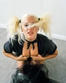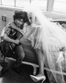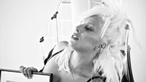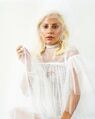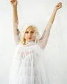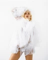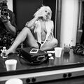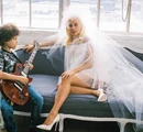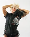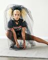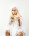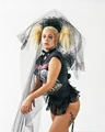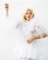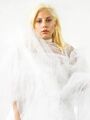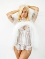- Dress by Valentino, brief by Kiki de Montparnasse, corset by Fifi Chachnil, veil by Tia Mazza, and pumps by Giuseppe Zanotti.