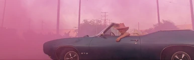 In this interlude Lady Gaga is seen wearing her iconic pink Joanne hat while driving around an empty parking lot in a light blue Ford Mustang and flipping the bird at the camera. Bright pink smoke engulfs the car and the video ends with Gaga exiting the car and walking into the distance. Then "John Wayne" plays.