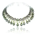- Black beaded multi-strand necklace with flower from “Fleur d'Opales” capsule collection.