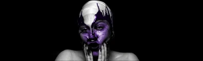 The screen descends back down to the front of the stage and a black and white close-up of Gaga's face appears. Throughout the video, purple paint is seen dripping in reverse up Gaga's face. At the end of the film, Gaga smears the paint all over her face with a scared facial expression at the end. Then "Bad Romance" plays.