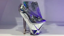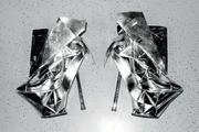 - Pictured in purple. Lady Gaga wore a holographic version of glass platform boots.