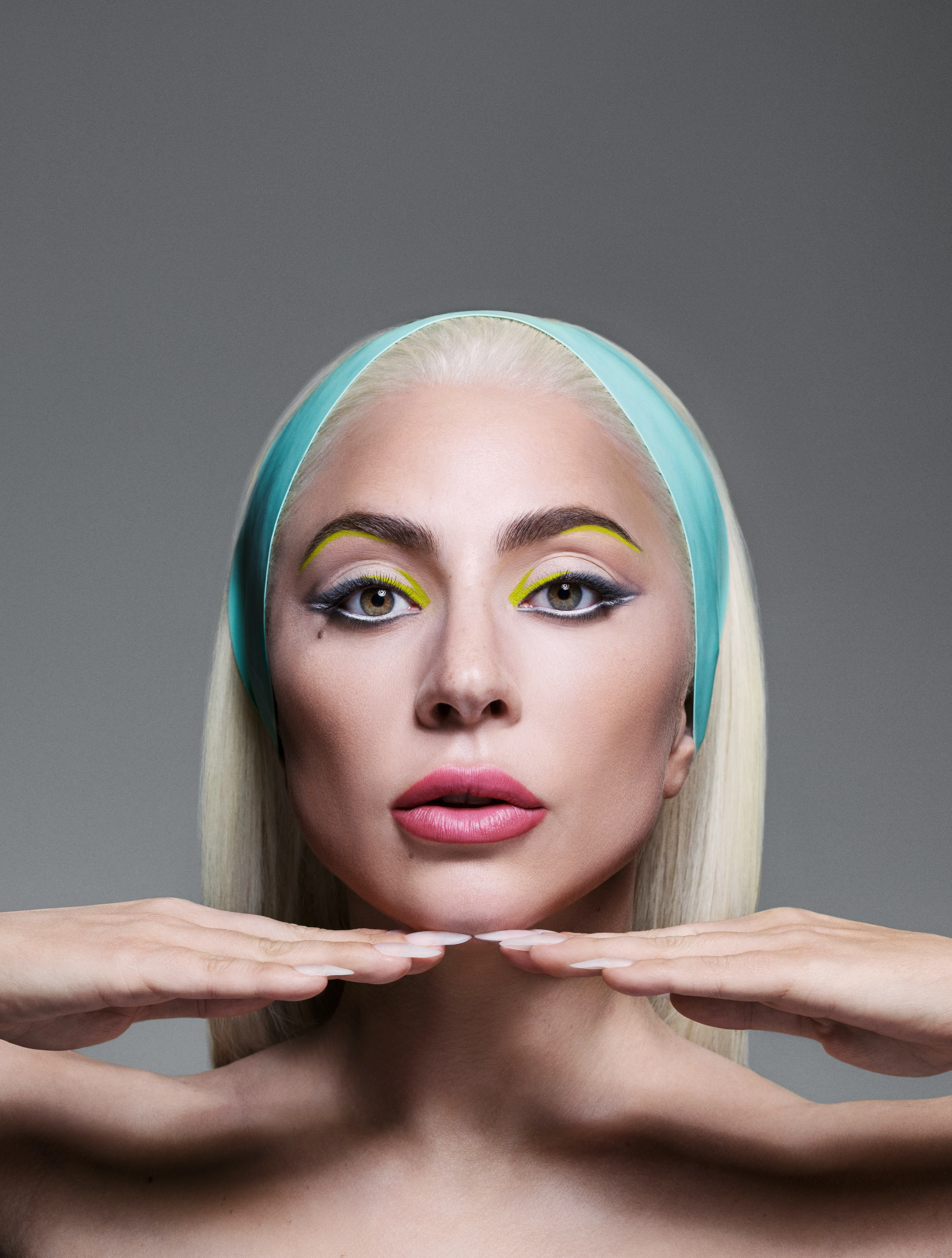 - Lady Gaga wears an outfit by Versace, and earrings by Ten Thousand Things x Inez & Vinoodh.