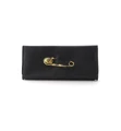 - Custom one-shoulder top with a lion medallion on the shoulder and safety pin embellishment based on the pictured one, gold-tone hardware-trimmed flare mini skirt, and yellow fake fox fur tail keychain.