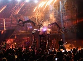 Custom fabricated props including 14ft. robot, 60" floating halo, and musical instruments including piano and keytar. Jet hired Ever Gonzalez to sculpt the encasement of the new EMMA, the Light Ship (also known simply as a robot) and the Healing Chamber chair based on the sketches by Kylar Loya.