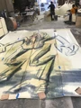 - Maria Greschenko worked as a scenic painter with the company Jet Sets for this music video. The abstract curtains are three layers of painted flats. Each flat was about 30' tall. First, a 2'x2' grid was measured. The grid was then defined with the aid of a snap line. The design was then drawn with chalk and painted white.