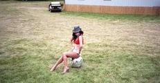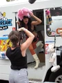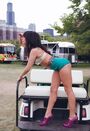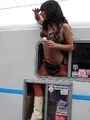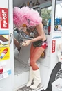 - Custom bra by Haus of Gaga, briefs by Dolce & Gabbana, heels by Christian Louboutin, and belt by Madame V.