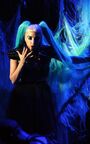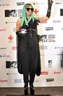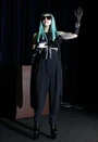 - Custom bra top, neck brace, shoulder pads and skirt by Christian Dada, pants by Camilla and Marc customized by Perry Meek, and boots by Ellie.