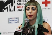 During the conference, Gaga sipped from a teacup reading "Prayers for Japan." The cup will be put up for auction and the proceeds given to charity. The singer has been active in for victims of the March 11 disasters, contributing a song to a charity album and a message for a fund-raising T-shirt.