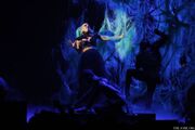 Lady Gaga opened the show trapped in a giant spider web for her performance of "The Edge of Glory", the latest single from her third album Born This Way, later Gaga climbed to the top of the stage to a custom-made spider-shaped piano inspired by Maman, the ten metre Louise Bourgeois sculpture located in Roppongi Hills in Tokyo, and performed "Born This Way".