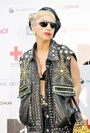 - Pants by Toga, boots by Pleaser, sunglasses by General, necklace by Roggykei, cuff by Chanel, gloves by Mugler, and Lady Gaga Japan Earthquake Relief Wristband.