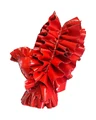 - Sculpted red latex corset bodice with boning, studded details and calf-length cape sleeves, and matching fishtail dress, made in collaboration with Fancy Monkeys.