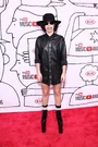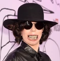 - Shirt by Saint Laurent, boots by Pleaser, socks by American Apparel, hat by Dior Homme, sunglasses by Tom Ford, dental cuff by Gilding Primal Instinct.