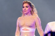 During Act III, Gaga wore a bodysuit and long-sleeved bolero made out of bright blue denim and entirely encrusted in white pearls and crystals. Starting on September 1, Gaga started to take off the bolero to perform "Telephone". When the tour resumed for its 2nd leg on November 3, 2017, Swarovski crystals2 were added to the ensemble.