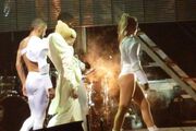 - The natural wool cream jacket and pants were worn on select dates of The Monster Ball 1.0: