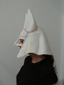The Hunchback Suits is a series of suits made of two pieces, a jacket with exaggerated shoulders and a pair of high waisted pants. Four different color were made including black, natural wool cream, sheer white (prototype) and a mirror version. The black and cream version had buttons, notched lapel and a long tail on the back. The mirror jacket has a "Haus of Gaga" tag on the inside as shown on The Oprah Winfrey Show in 2010. All hunchback jacket were created in collaboration with Muto-Little Costumes.